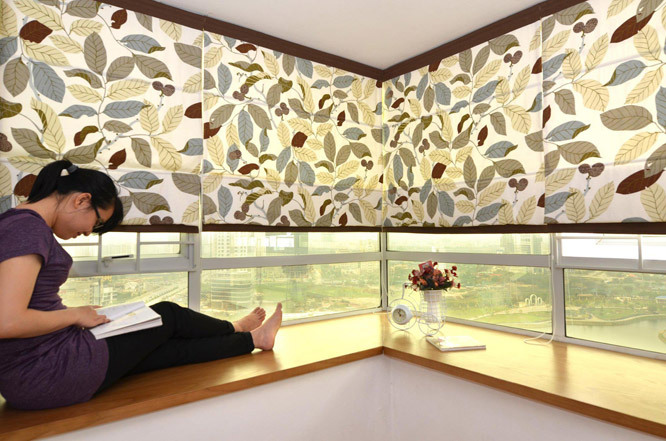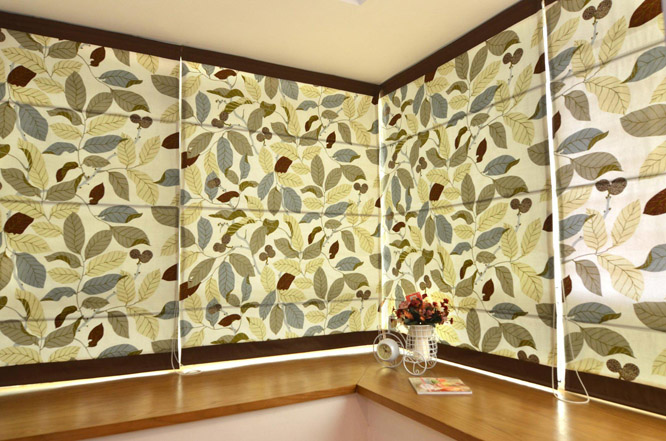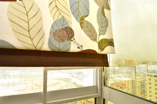 Gần với không gian phòng khách, vẫn là những họa tiết hoa nâu, rèm roman lại giúp Trang có thêm không gian gọn gàng cho việc đọc sách, vẫn thật lãng mạn khi kéo tấm rèm, bên kia là 1 không gian xanh của thiên nhiên phải không ?